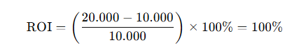 Dalam contoh ini, perusahaan memperoleh dua kali lipat dari investasi yang dikeluarkan, sehingga ROI-nya adalah 100%.