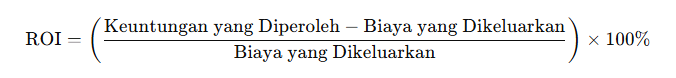 Return on Investment (ROI) adalah ukuran yang digunakan untuk mengevaluasi efisiensi dan profitabilitas dari suatu investasi. Dalam konteks pameran, ROI mengukur sejauh mana investasi yang dikeluarkan untuk mengikuti pameran menghasilkan keuntungan atau nilai lainnya, seperti peningkatan penjualan, pelanggan baru, atau kesadaran merek.