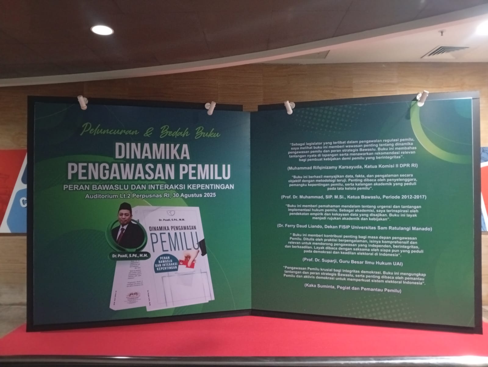 Digunakan dalam konferensi, pameran, atau acara promosi perusahaan, backdrop ini biasanya menampilkan logo perusahaan, slogan, atau informasi produk. -